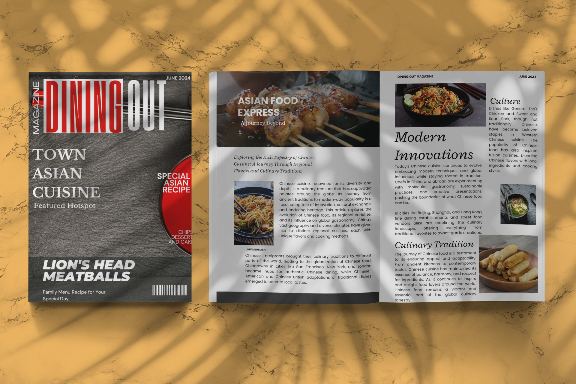 DINING OUT Restaurant Magazine The cover features a high-resolution, vibrant photograph of a beautifully placed bowl and a pair of chopsticks from an upscale Asian restaurant.